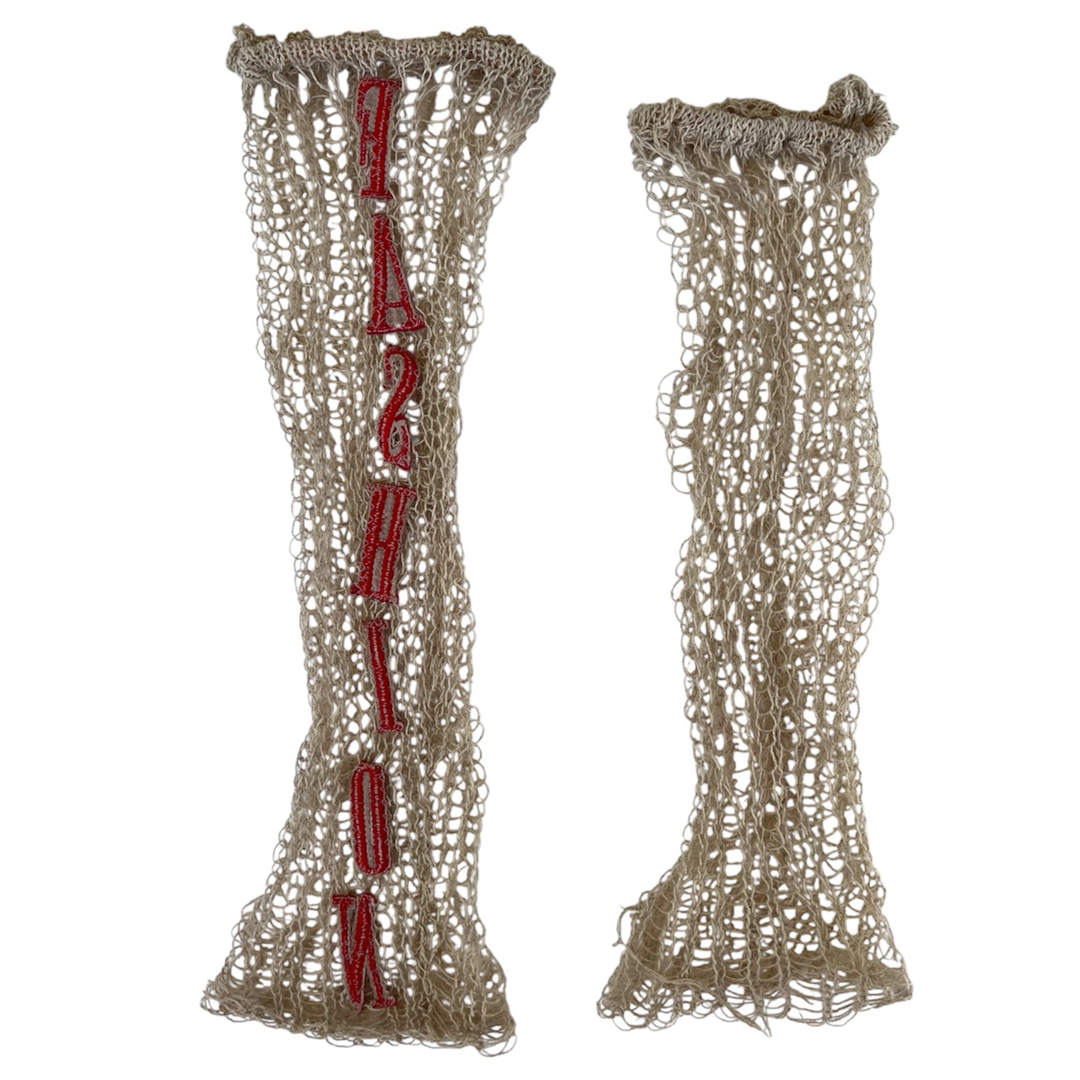 another layer for your leg. f – a – s – h – i – o – n mirrored spelled on one. layers are in different lengths. Hold up by elastic tape. one of a kind